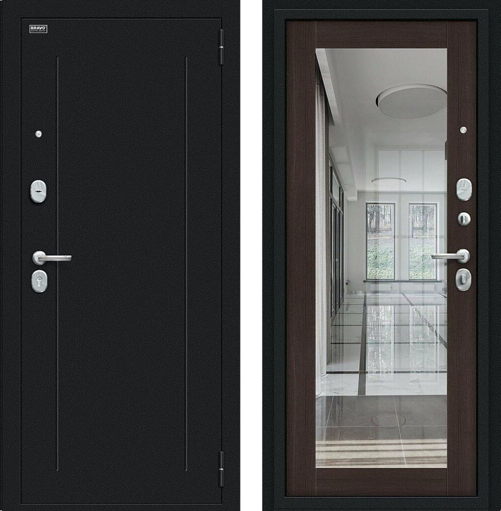 Надежная входная Дверь Браво Флэш Букле черное/Wenge Veralinga премиум класса по цене 32 817 руб. Большая толщина стали защитит от проникновения в ваш дом, квартиру или коттедж. Используется очень качественная фурнитура: замки, цилиндры, ручки, защелки. Покрытие и отделка двери изготовлено под внимательным контролем производителя. Дверь имеет долгий срок службы и гарантию.