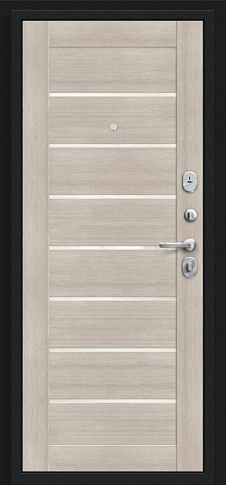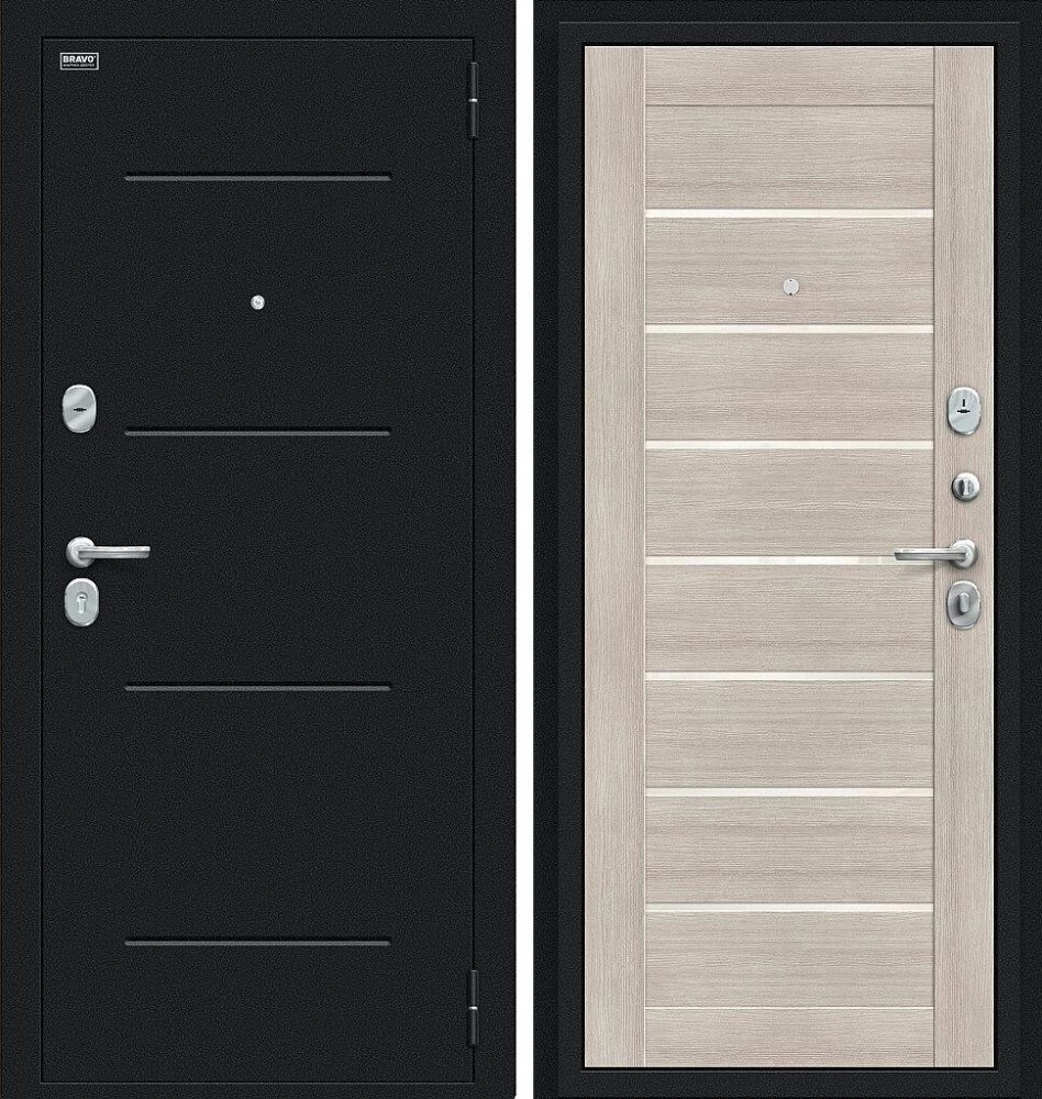Надежная входная Дверь Браво Техно Букле черное/Cappuccino Veralinga премиум класса по цене 31 217 руб. Большая толщина стали защитит от проникновения в ваш дом, квартиру или коттедж. Используется очень качественная фурнитура: замки, цилиндры, ручки, защелки. Покрытие и отделка двери изготовлено под внимательным контролем производителя. Дверь имеет долгий срок службы и гарантию.