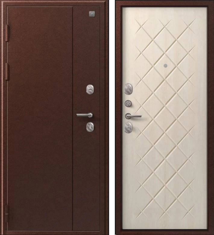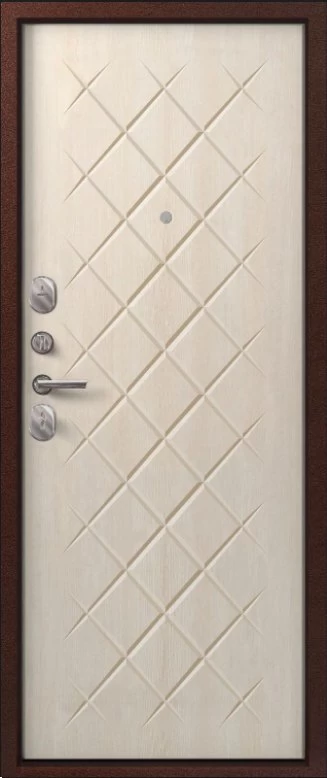 Надежная входная Дверь V-02 медь антик - седой дуб премиум класса по цене 36 717 руб. Большая толщина стали защитит от проникновения в ваш дом, квартиру или коттедж. Используется очень качественная фурнитура: замки, цилиндры, ручки, защелки. Покрытие и отделка двери изготовлено под внимательным контролем производителя. Дверь имеет долгий срок службы и гарантию.